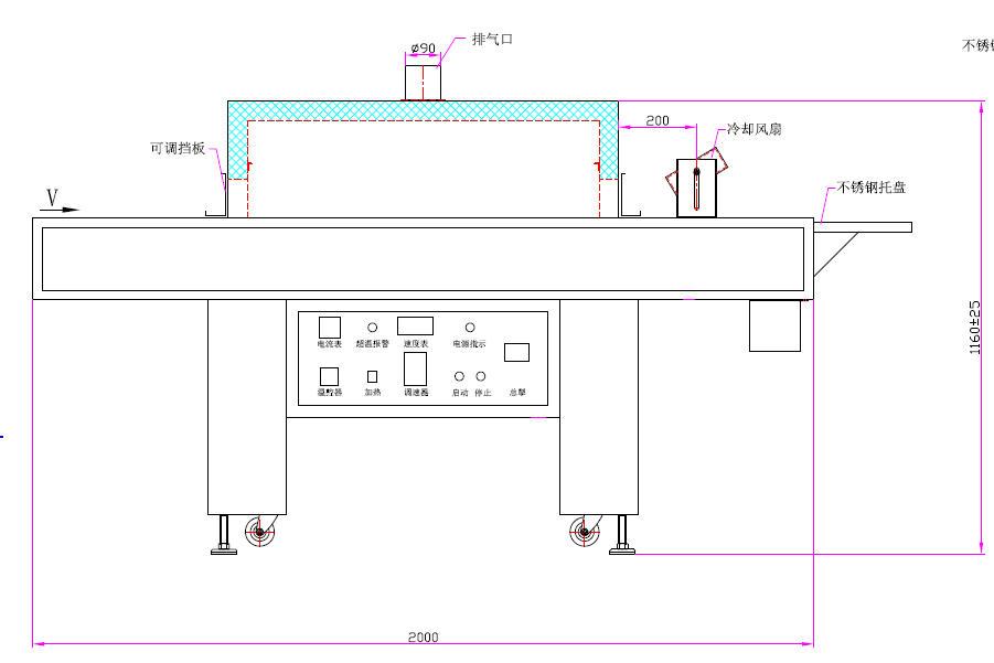 3、采用无级调速 | 4、输送材料:不锈钢网带 |